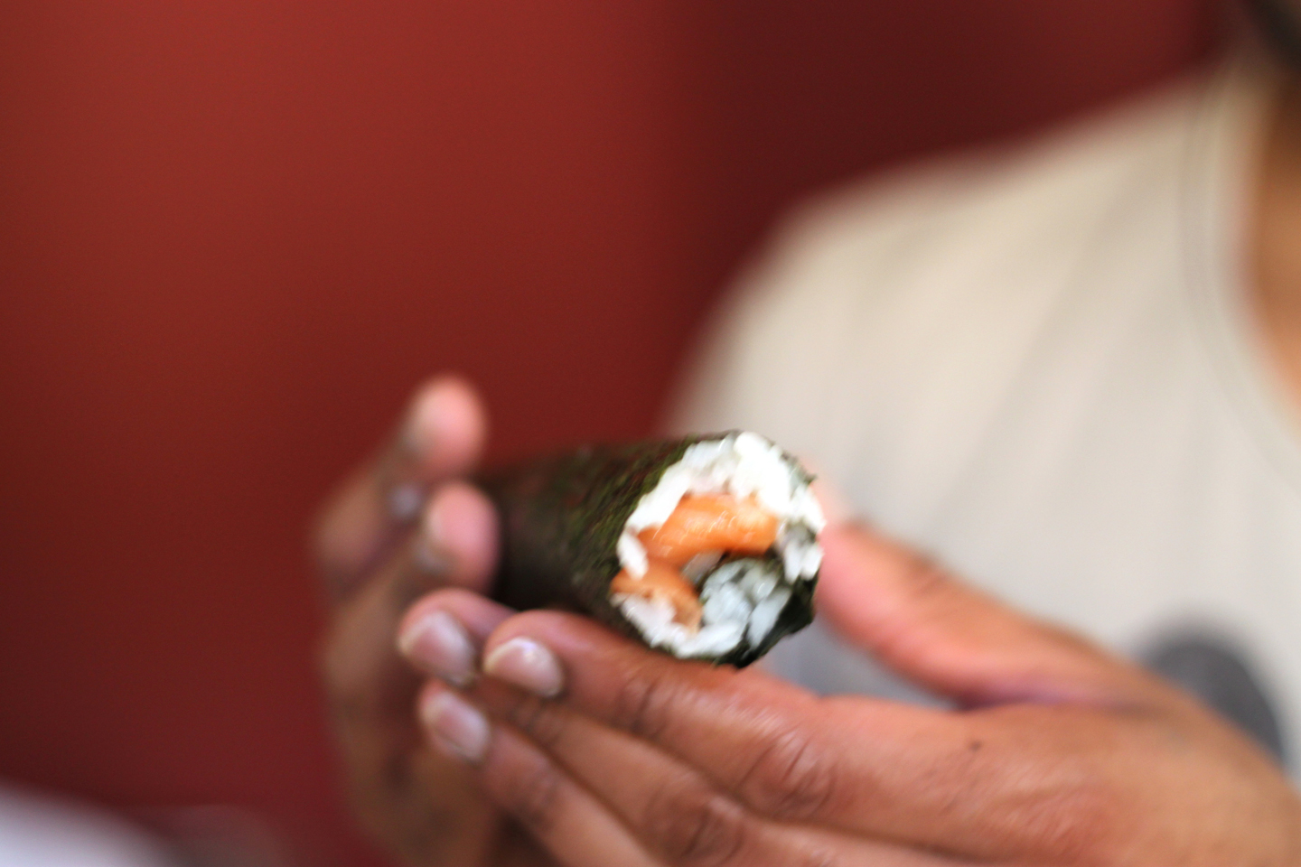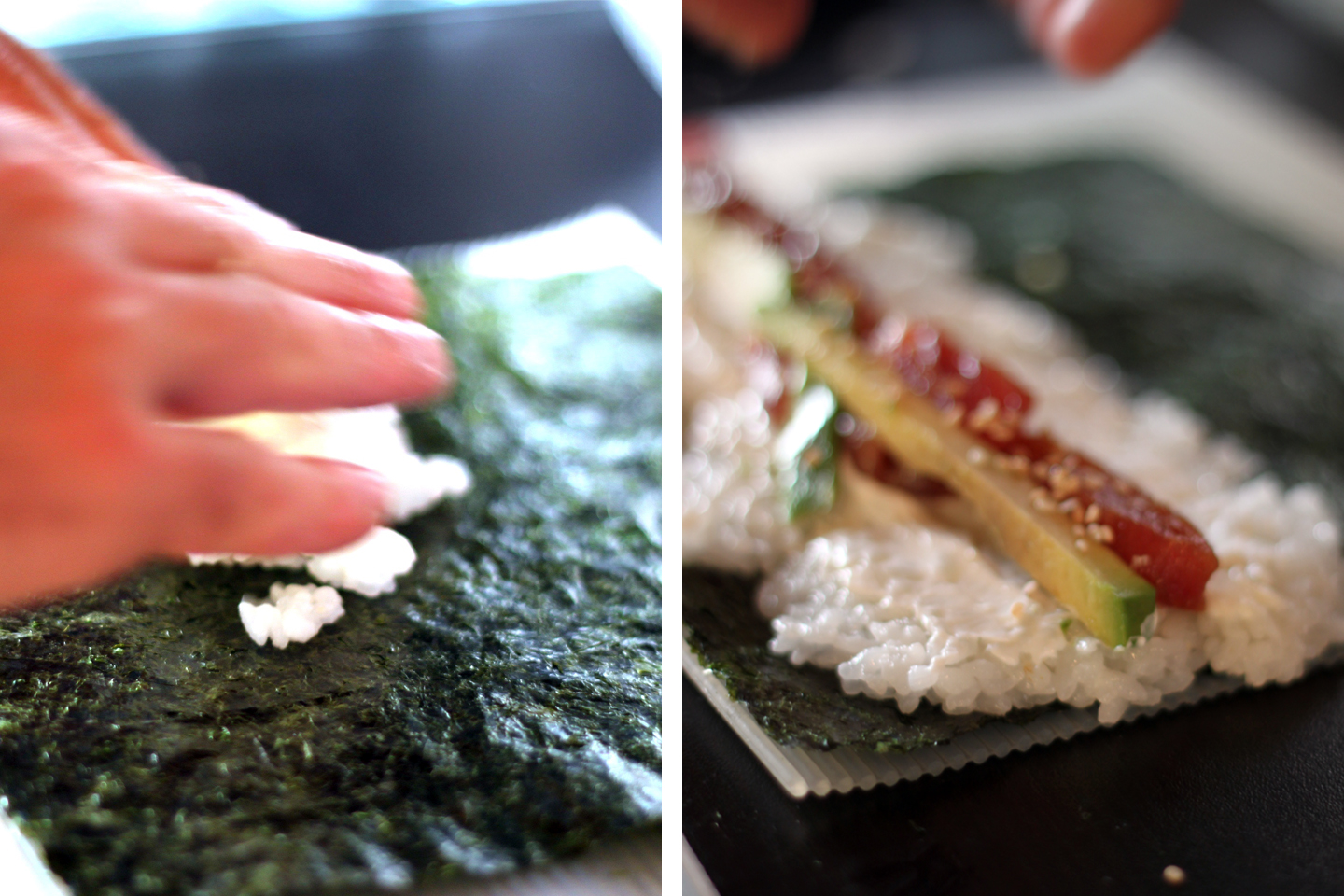 Ho recuperato un vecchio libro di cucina giapponese acquistato in Francia e mi sono messo all’opera. Ho così scoperto che la cosa più difficile per un sushi ben riuscito è la preparazione del sumeshi, il riso. Deve essere fatto alla perfezione, i chicchi devono aderire tra loro ma senza diventare collosi. È l’unica ricetta che dovrete seguire, infatti, per il resto potete dare libero sfogo alla vostra creatività, divertendovi in gruppo e inventando mix inediti di ingredienti come: tonno marinato, avocado, semi di sesamo oppure frittata, asparagi e formaggio caprino o ancora melanzane fritte e miele… insomma sbizzarritevi!