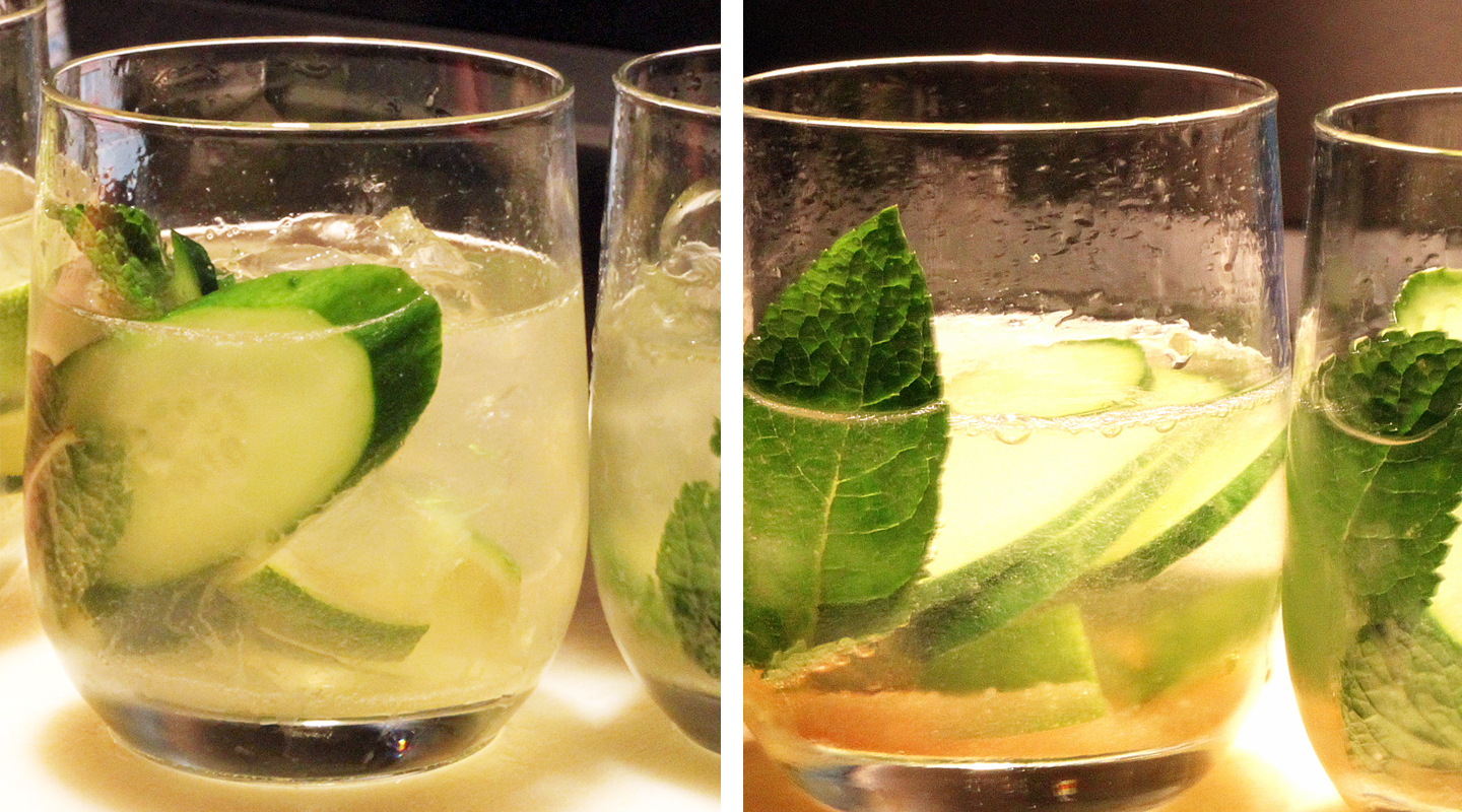 ECCO COME PROCEDERE. Versiamo 2 cucchiai di zucchero in ogni bicchiere, aggiungiamo due pezzi di lime che spremeremo con il pestello (come si fa con il mojito), 2 fettine di cetriolo, 2 foglie di menta, 60ml di sakè, uno spruzzo di soda e il ghiaccio (tritato o intero). Rimestiamo delicatamente e serviamo. Prosit… o meglio, KANPAI!